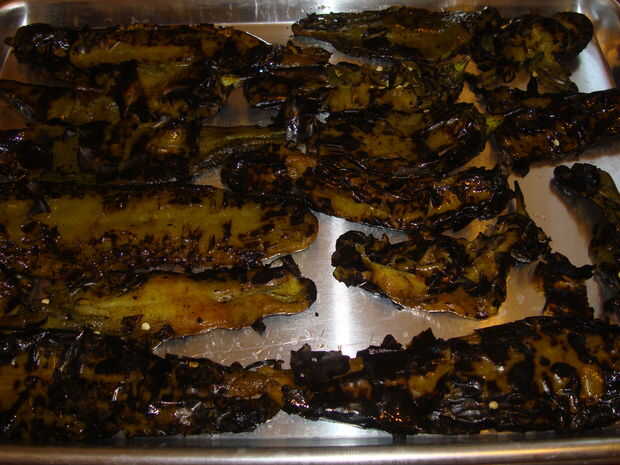 La temporada de chiles verdes está llegando a su fin y casi no recibió este año.  No estaba seguro si quería poner ninguna este año.  Tipo de ponerlo en el quemador de atrás, porque estuvimos ocupados trabajando en nuestro lugar.  Para mi sorpresa mi hermano me trajo un bushel de 1/2 de pimientos frescos de la tienda.  Prefiero asar mi propio porque la tienda no siempre cocinarlas el tiempo suficiente en mi opinión. Pero yo estaba emocionado de recibir estos igual.  Un año mi madre asado chiles verdes para mi hermana en un horno como el mío donde el asador está en la parte inferior.  Casi tienes que conseguir en las manos y las rodillas para mantener un ojo sobre ellos lo que hace difícil asar. Un par de autores aquí en Instructables ha publicado recientemente un tutorial sobre cómo asarlos.  Así que aquí están los enlaces para aquellos que: