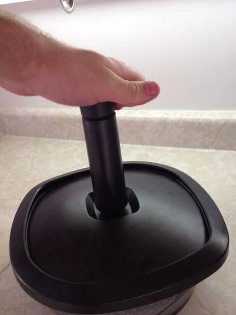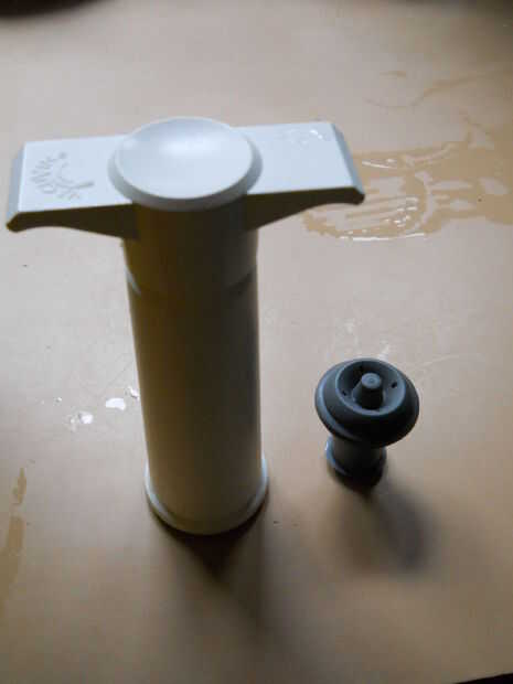 Después de probar cuánto vacío podría tirar, opté por usar una bomba de mano saver vino para mis primeros experimentos (ver imagen abajo). Hay muchos otros sistemas similares en el mercado--generalmente etiquetado como marinado inmediato envases o sistemas de bolsas de vacío.