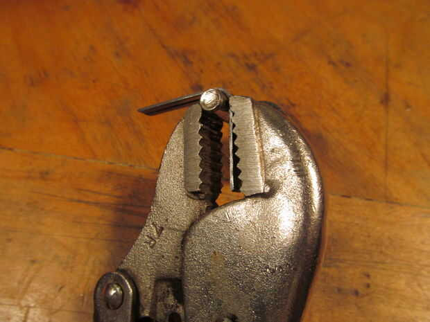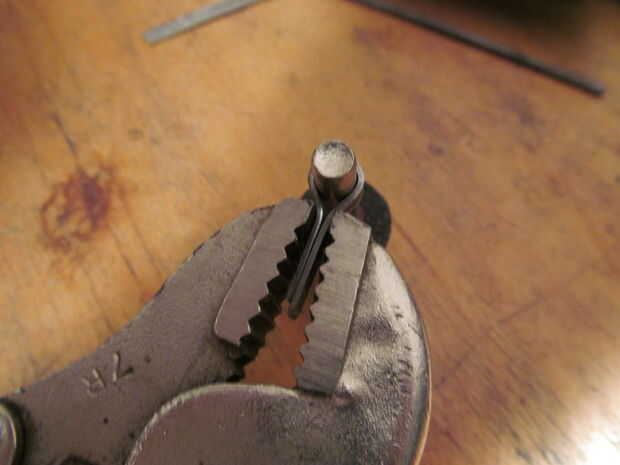 Cuando le suelto del ajuste resorte abierto sólo un poco. Para remediar esto sostenía la posición de cerrado y calentado hasta que era rojo caliente. A continuación apaga en el agua. Ahora cuando suelto del escenario permanecía cerrado. Esto significa que el ajuste va a querer resorte cerrado en vez de querer resorte abierto.
