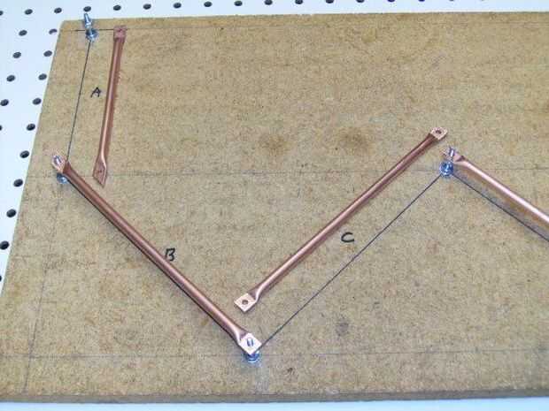 Se cortan los vínculos de cuarto de pulgada fuera de la tubería de cobre de diámetro, thinwall o thickwall. Los links no son intercambiables, incluso con los de la misma longitud nominal, y su orientación end-to-end y en la rotación debe ser la correcta. Una vez que los agujeros son perforados y rebabas, las aletas de cinta con letras se añaden a cada enlace.