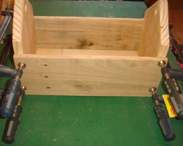 Poner pegamento en los bordes de las piezas laterales, entonces Sujete todos juntos