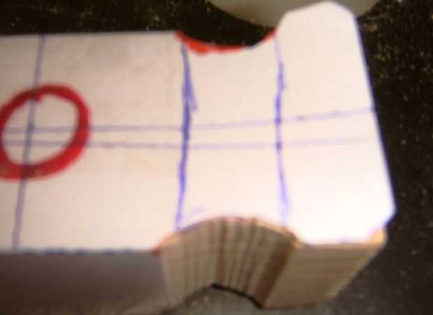 Coloque el patrón sobre el borde de la tabla como en la foto.