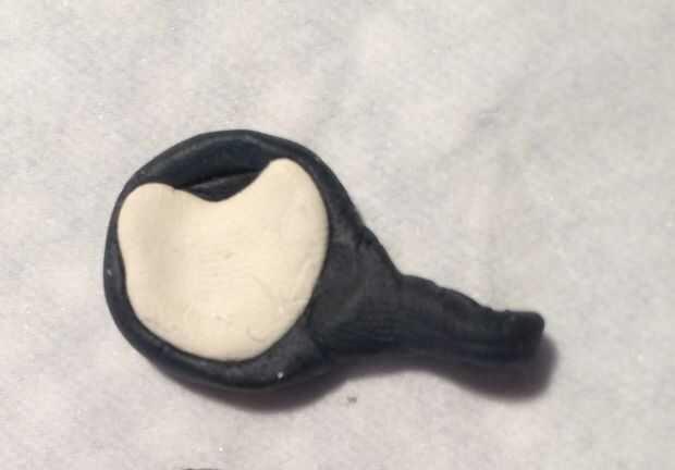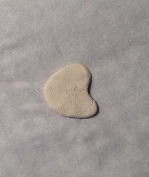 2. aplasta la bola de arcilla blanca abajo en un círculo, pero no en una delgada. Desea que este círculo a ser más gordos que la clara del huevo deseado.