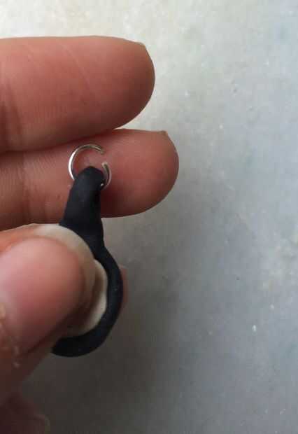 3. abrir los ganchos de pendiente y sujete a los anillos de salto.