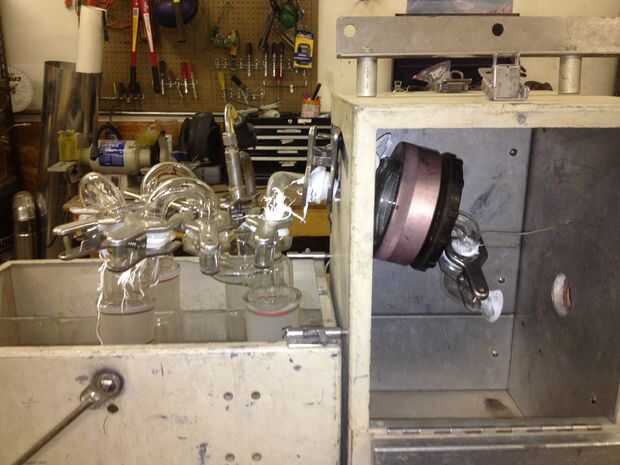 2. hay dos lados a una campana de filtro de cristal. Un lado de la campana tiene un lado recto y un lado tiene una curva.  Desenrosque la campana filtro y abrir la campana. Dentro de la campana es una frita de plástico, colocar el filtro sobre la frita. Volver a montar la campana con el lado del filtro de la frita al extremo curvo de la campana de cristal y el lado derecho de la campana hacia el lado opuesto de la frita. A continuación, cinta de Teflón alrededor del exterior del vidrio y fritas. Atornillar los extremos con la campana en el interior.