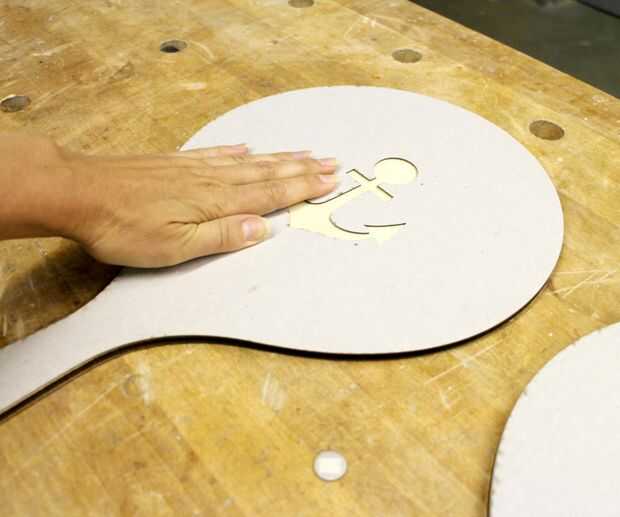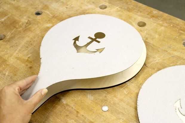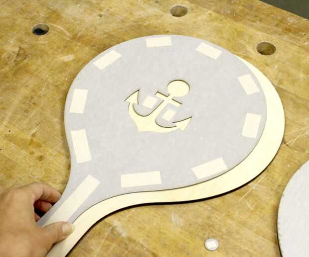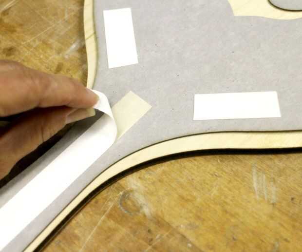 Retire el papel protector de la cinta de doble palo en las plantillas de anclaje y aplicarlos cuidadosamente a las paletas.