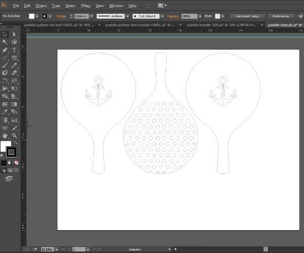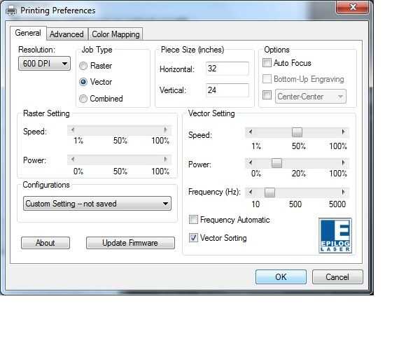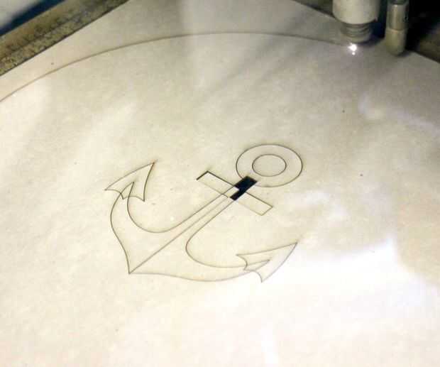 Nota: Cambie la configuración de corte láser para: velocidad = 50% / energía = 20% / frecuencia = 500 y ajustar el tamaño de material a la medida de su conglomerado. (El material tiene que ser un mínimo de 28 "x 18") Usted también necesitará ajustar el tamaño del lienzo del archivo Illustrator si el tamaño de su material es de un tamaño diferente. Y EL PEQUEÑO PUNTO DEL CENTRO DE LA CABEZA DEL ANCLAJE. Que va a utilizarlo más tarde.