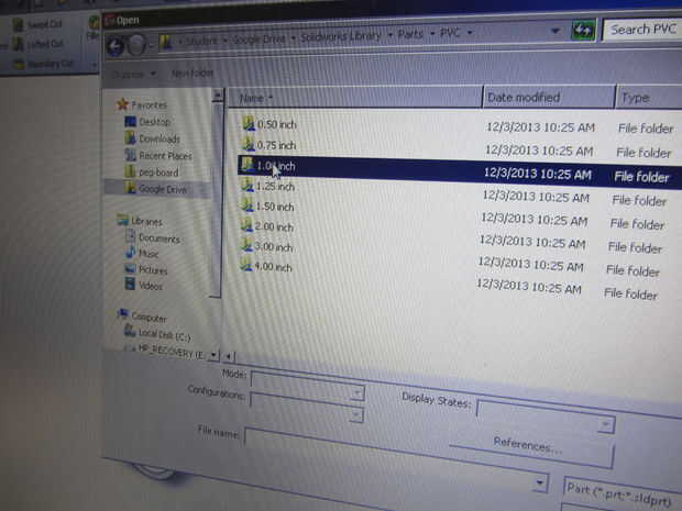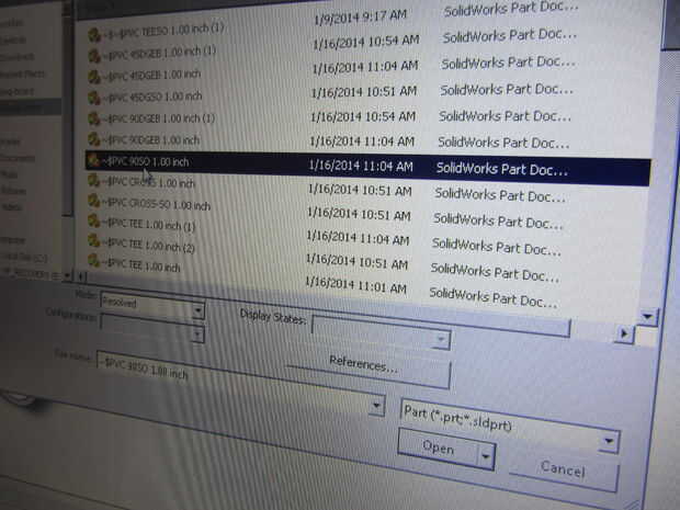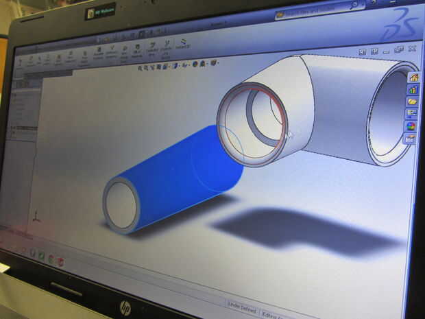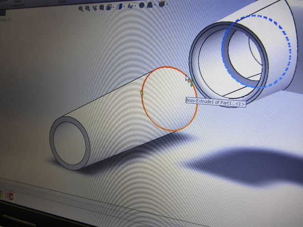 Ahora que el tubo de cilindro hueco de PVC está en el dibujo tienes que insertar una conexión de tubo de PVC. Dependiendo de qué ángulo es necesario para el tubo de PVC el ajuste va a cambiar. Para llegar a la instalación de solidworks que tiene: