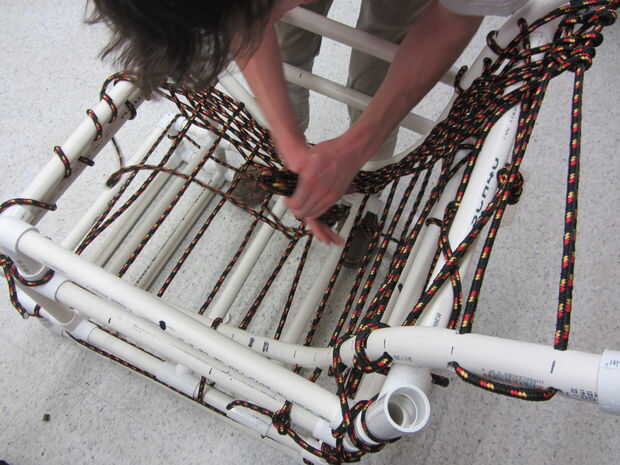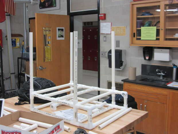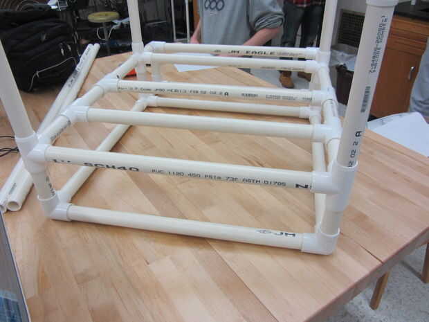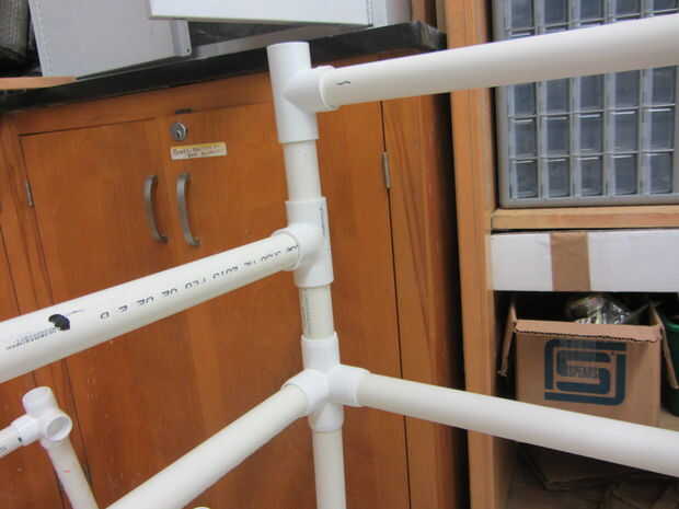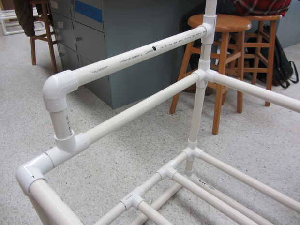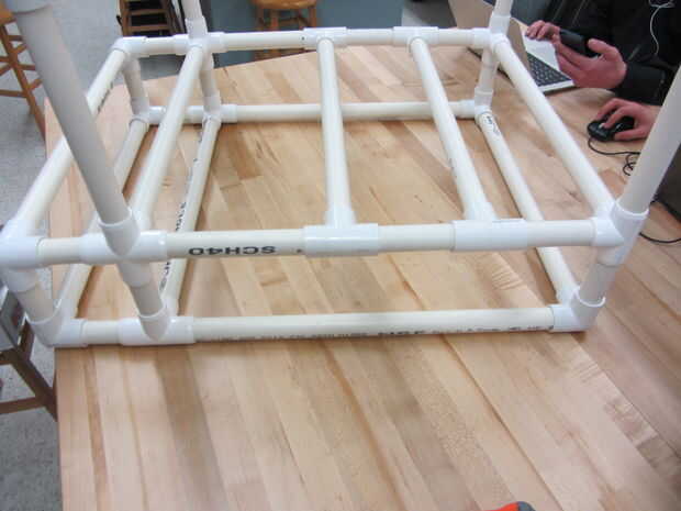 La segunda Asamblea sub es mucho más simple que el primero. Las piezas se componen de piezas que son un pie de largo en altura. Esto no puede parecer como un montón pero fijar estas piezas a la primera Asamblea sub que incluye la estructura de la parte inferior tiene una altura total de 21 pulgadas. Este 21 pulgadas incluye las piezas de conector de pvc. El cuadro 3 y 4 ilustran esto completamente.