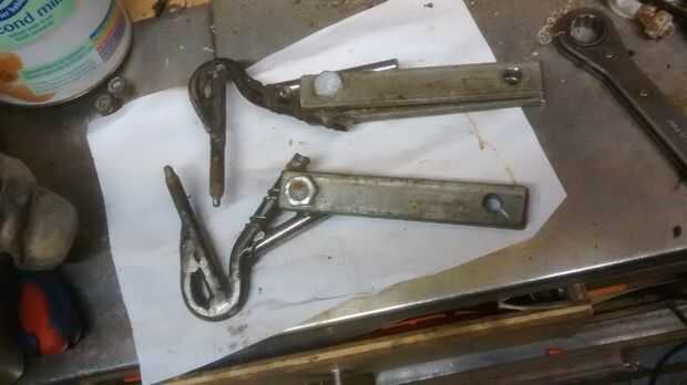 esta hecha de 25 mm 6 mm barra plana, amortiguadores de choque y un gancho endurecido de material de andamio que alteré