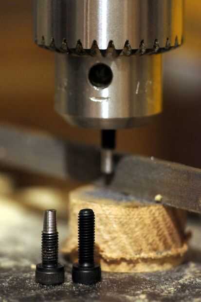 Estos tornillos son bastante robustos, pero pueden ser presentadas abajo fácilmente suficiente utilizando un taladro como un improvisado torno. Retire el tornillo y apriete el mandril de su taladro en la parte superior. Utilice el taladro para girar el tornillo como se aplique el archivo para moler lejos la parte ofensora de la rosca. Se tarda un minuto o dos, y necesita apoyo de todo mientras se trabaja a máquina para que no dañar la rosca, sino algo limpio, quitar la última parte de la misma. Como se muestra en la foto, utilicé un pequeño pedazo de madera de desecho como el soporte de una herramienta para el archivo.
