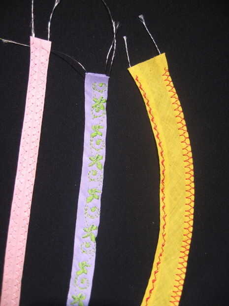 El tipo de hilo, sesgo cinta y puntada patrón afectará el resultado final.