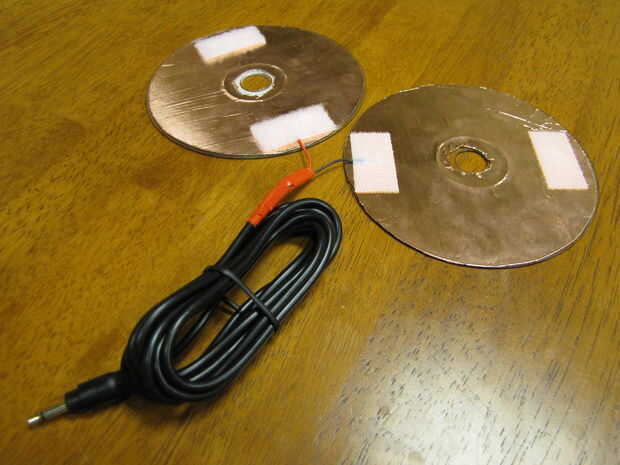(Una vez más, tenga en cuenta que estas piezas de Velcro se alineen para que se peguen juntos cuando los CDs se presionan juntos.)