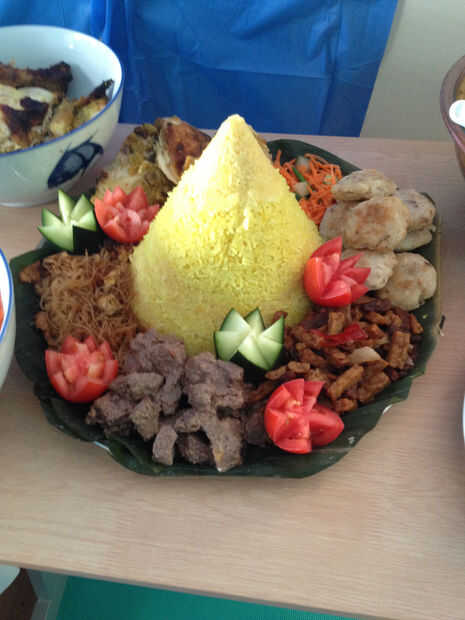 Como he escrito antes, hay tumpeng de postre, tumpeng con arroz blanco y tumpeng con arroz amarillo. Aquí hay un par de fotos para mostrar.
