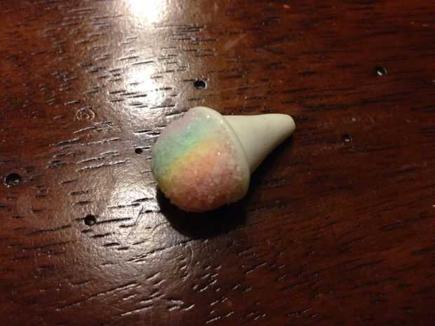 construido con arcilla que fue formado usando una cabeza de fósforo y una aguja.El cuerpo es arcilla finas como el papel, al horno y muy frágildespués de perder cuatro de ellos que quemado mientras que de cocción es el resultadoEl pico fue hecho por