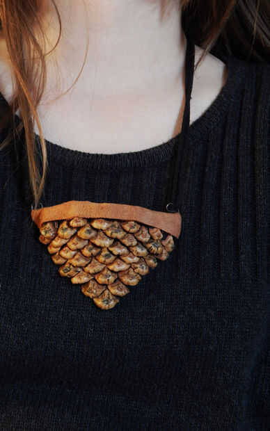 He elegido que otra vez esta interesante materia, el cono de pino y ahora hacer de esto un poco jewerly, un colgante. Creo que es una joyería fácil y natural.Paso 1: Pino contra escalas Corta el pino contra escalas.Paso 2: La Base De una especia de t