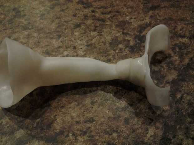 Ahora que se construye el cono y su base ha sido moldeada y es tiempo para conectarlos. Comience sumergiendo el extremo angosto del cono y el cono uno la base en el agua. Una vez que están claras les unen, utilice de nuevo el tubo para mantener el cono de cierre. No estaba seguro si mi conexión era robusta bastante así que había reforzado con algunos pedazos de desecho.
