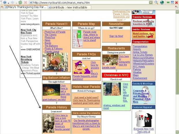 Desplazándose hacia abajo, vemos un enlace a "Desfile de la historia"