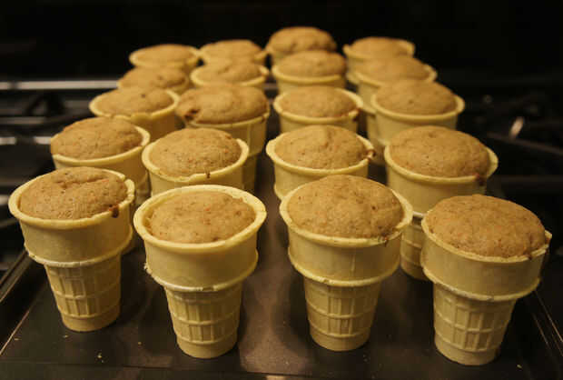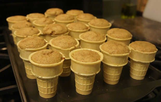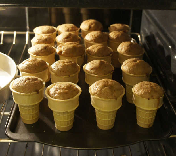 Preparar una mezcla de pastel estándar 15,25 oz en caja por instrucciones de la caja.Paso 1: Organizar tus conos para rellenoPor una caja de mezcla para pastel preparada, arreglar 18 conos de helado tipo de pastel en una bandeja para hornear. He sele