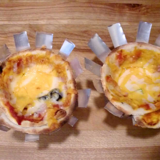 Hornee a 175° C [350° F] durante 7-10 minutos. El queso superior debe haber derretido junto con todo el queso dentro, perfecto! Durante este horneado la masa también termine de cocinar.