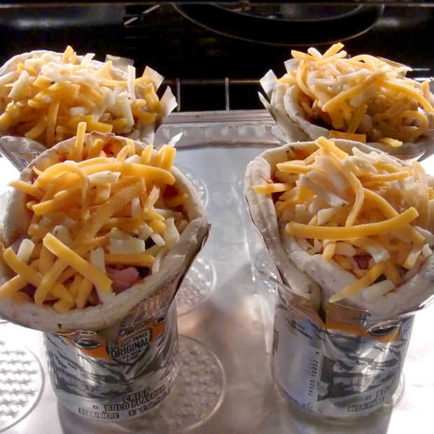 Una vez cocida, con cuidado retire los sujetadores de cono de aluminio del horno y deje enfriar por unos minutos antes de retirar de las latas. Aliviar suavemente cada cono de su titular y el abrigo el la parte inferior del cono con papel absorbente y servir.