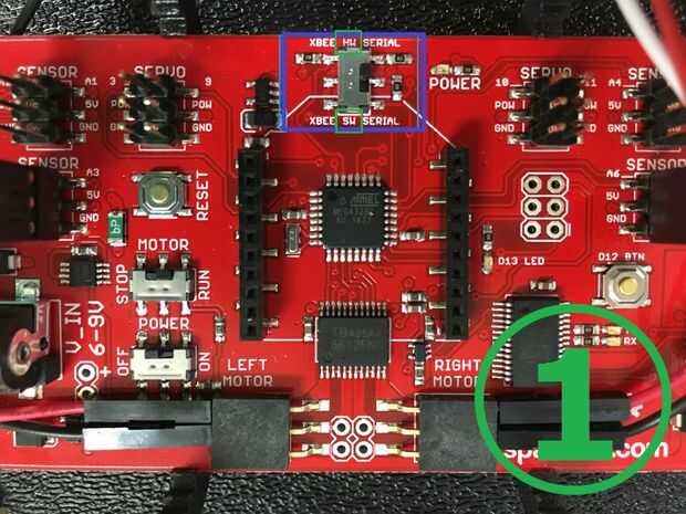 En orden para el robot trabajar, usted necesitará volver a cambiar el conmutador de puertos en el tablero al hardware, como se muestra en la imagen 1.