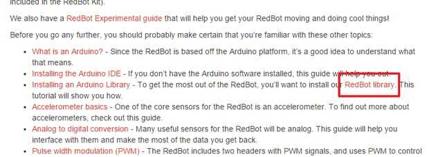 RedBot Arduino bibliotecas: Las bibliotecas de Arduino toman una tarea compleja y hervirla hasta fácil de usar funciones. Arduino usuarios han escrito un montón de interesantes complementos para Arduino y hay bibliotecas especiales para trabajar con RedBot.