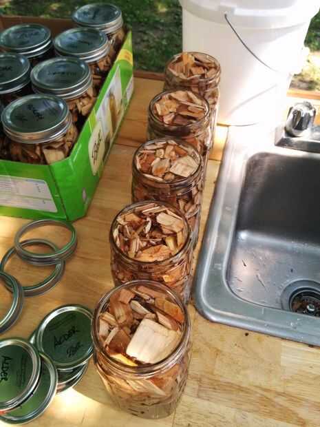Astillas de madera absorben mucho agua en el proceso de remojo - remojo previamente satura la madera antes de la final de enlatado, ayudando a mantener demasiado espacio (el aire sobre el agua) se formen en los recipientes.