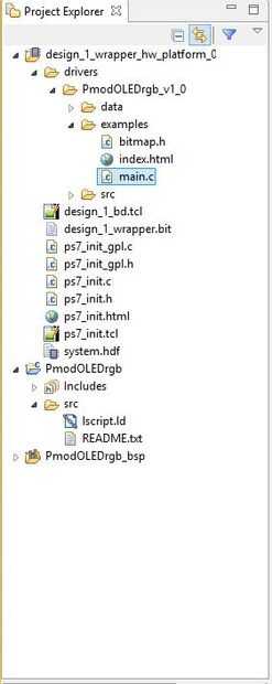 Expanda la carpeta < design_name > _wrapper_hw_platform_0 y vaya a PmodOLEDrgb_v1_0/drivers/ejemplos /