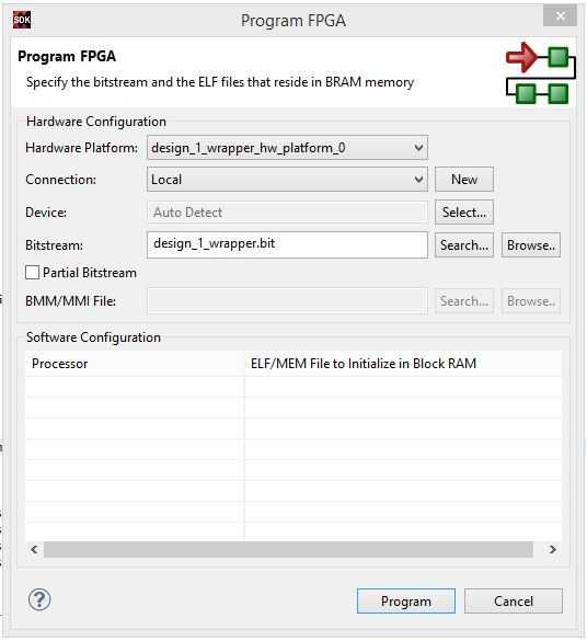 En la barra de herramientas superior, haga clic en Herramientas Xilinx > programa FPGA. Haga clic en el programa para programar la FPGA.