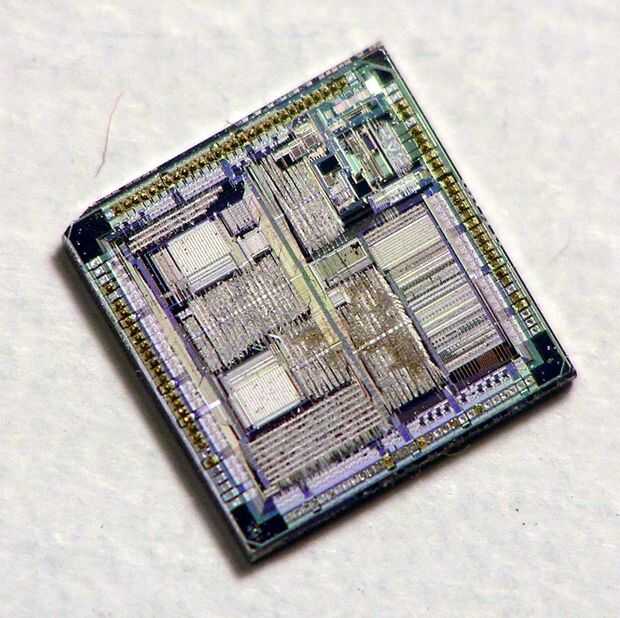 Ahora, si tienes un microscopio puede utilizarlo para mirar en el circuito del chip. Va a ser un poco dañados por el calor y el proceso de eliminación de la matriz circundante, pero usted debe poder ver claramente la disposición general de la silicona. A veces puede encontrar avisos de derechos de autor, arte y ocasionalmente fabricante sellos trabajan que un diseñador puso en un repuesto de punto. Aunque realmente no puede ver el funcionan de los circuitos o los esquemas a su divertido aún ver el chip real que está detrás de toda la electrónica.