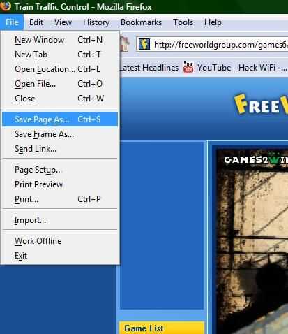Se ha cargado el juego, justo? Vaya a archivo -> Guardar página como. Ahora un pequeño cuadro de diálogo aparece salvo que como el nombre del juego y la selecciona donde quieres guardarlo, generalmente escritorio. Entonces la ventana de descarga aparece, por arte de magia se descargará a hiper velocidad, incluso sin mostrar la barra de progreso.