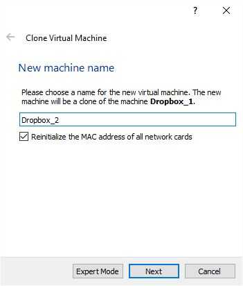 - En VirtualBox, haga clic con el botón derecho la propiedad machinename y elegir "Clon".