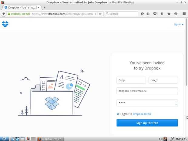 3. Regístrate en una cuenta de Dropbox con tu nueva dirección de correo temporal.