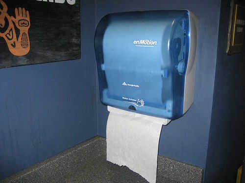 También, si el cuarto de baño tenía una elección entre toallas de papel y un secador de aire, use el secador de aire.