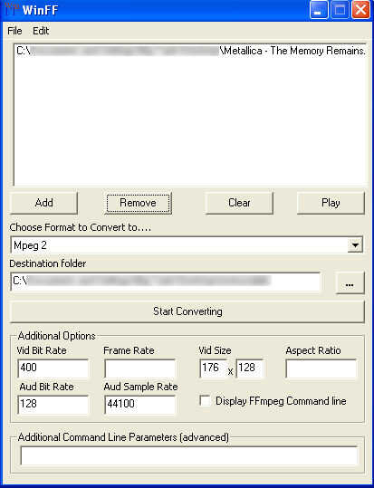 Los creadores de WinFF graciosamente incluyen los ajustes preestablecidos para rockbox en esta versión.