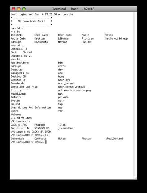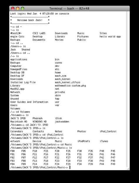 Vamos a explorar! Escriba "cd iPod_Control" y luego "ls"