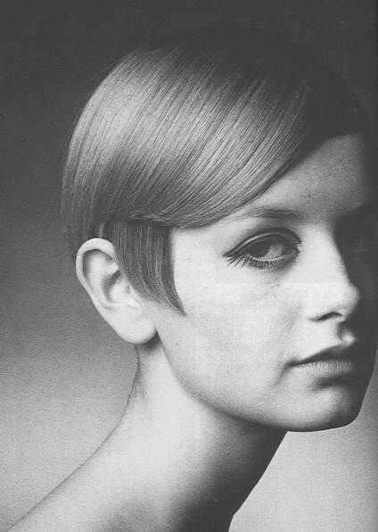 Lesly Hornsby, mejor conocida como Twiggy es uno de los más emblemáticos de los años 60 los modelos. Uno de los diseños de pintura de la cara que lució fue un ojo de la flor que se mostró en la portada de una edición de 1967 de Vogue compartimiento.