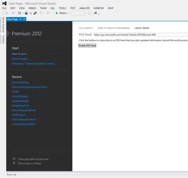 Paso 2: Encender en Visual Studio 2012 (cualquier versión sobre Express)