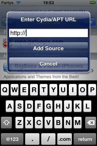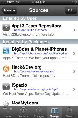 Para conseguir las roms, usted tendrá que añadir otra fuente a Cydia. Para ello, vaya a la pestaña manage en Cydia y, a continuación, haga clic en fuentes. Haga clic en Editar en la parte superior derecha, a continuación, haga clic en agregar en la parte superior izquierda. Tipo de