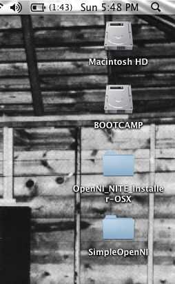 Mover estos nuevos archivos (OpenNI_NITE_Installer_OSX y SimpleOpenNI) a tu escritorio. Esto hará más fácil para hacer frente a la Terminal.