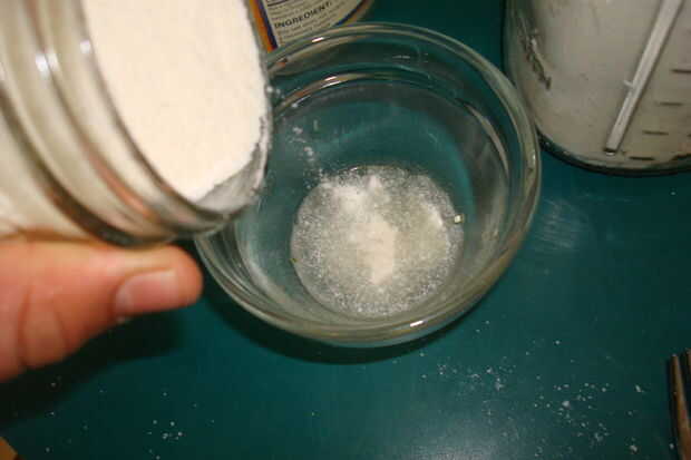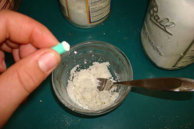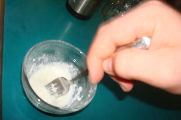 Mezclar una pizca de caldo de pollo con aproximadamente 1 cucharadita de agua, mezcle bien. Agregue el harina de arroz hasta formas una pasta (sobre la consistincy de granos) se mezcla bien y aplastar a todos los grupos. Abra la píldora (si es una pastilla sólida crush con cuchillo pesado) y mezcle polvo de píldora con masa. Revolver todo bien y añadir un poco más de agua para que la consistincy es como mazamorra Aguada, verter en placa y al perro. Perro comienza a lamer para arriba.