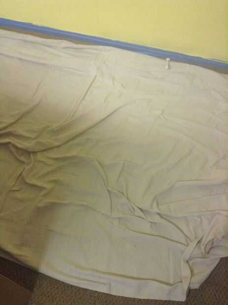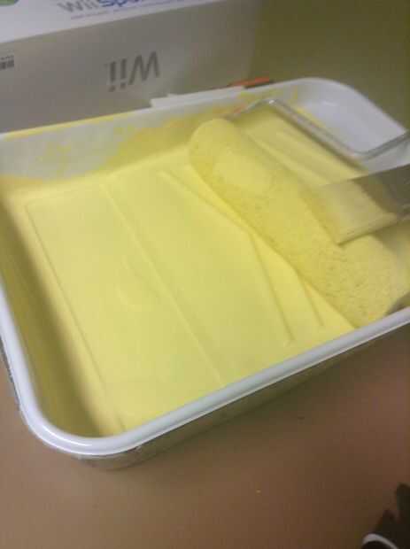 Lo siguiente que hice fue tomar todo fuera de la habitación estoy moviendo hacia empecé con una de las paredes y pintado pintado 2 capas de pintura de mi porque era un color claro sobre una púrpura u quieran mezclar la cartilla en su pintura se necesita imprimación