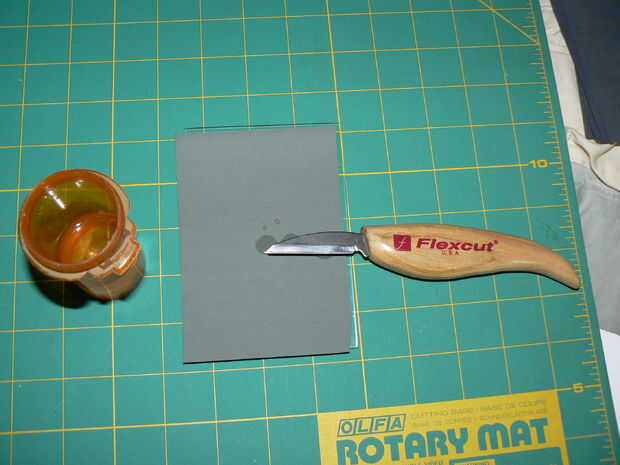Coloque la hoja de papel de lija en la pieza de vidrio.