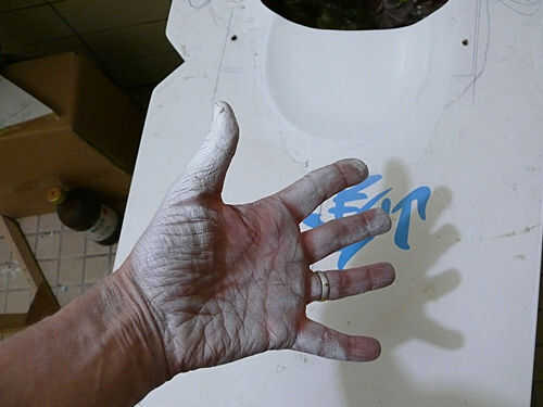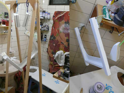 La unidad blanca en las fotos fue hecha de tablero que se fábrica en dos caras con un acabado blanco semi brillante duro. Todo lo que tenía que hacer era relleno, arena y pintar los bordes y el sluiceway, entonces tira el papel protector.