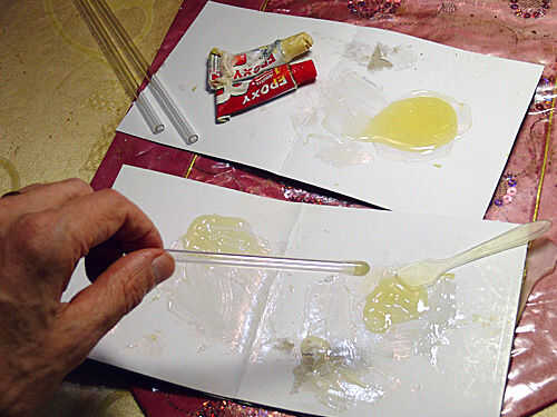 Mezcla epoxy y dip uno terminan en hacer una gota suave. Dejar que endurezca.