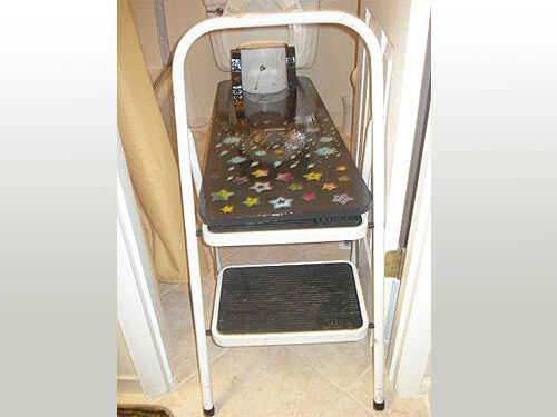 Levante la tapa del inodoro y el asiento y poner el tablero en su lugar con el fin de negocio apoyado en la taza del inodoro. La cabecera de la Junta debe ser constante y bien soportada. Pasa nada si la cabecera de la Junta es a nivel o ligeramente más altos que al final del aseo. NO es aceptable si la cabecera es más baja que el extremo de aseo. Si es así, apoyo la cabecera hasta por lo menos está en un nivel. Esto es más cómodo, y si el agua entra en la Junta fluirá en la dirección correcta.