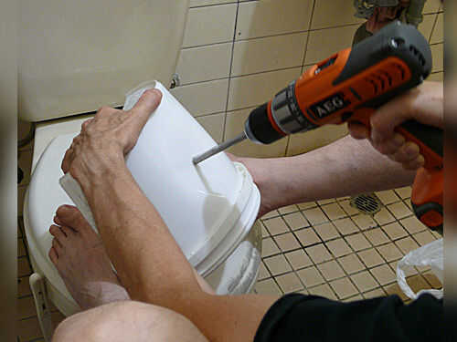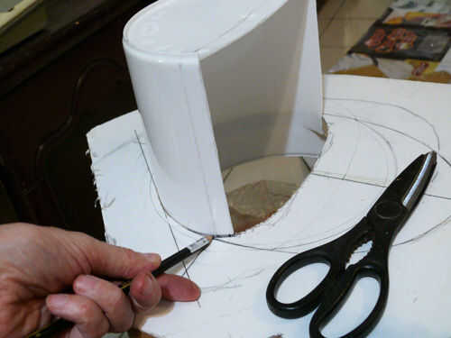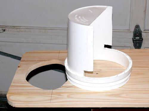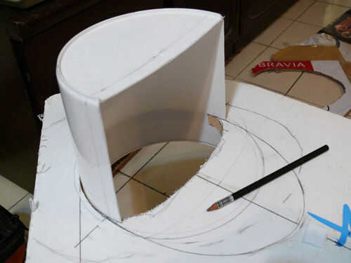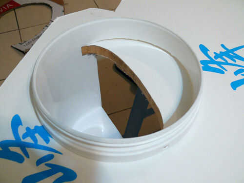 Ahora puede insertar la antisalpicaduras en el agujero. Marcar los laterales de los cortes aliviar las pestañas donde se Contacta con la Junta.