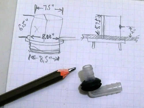 Compré un ojal de goma del tamaño correcto en la tienda de junta tórica (cabrito te no), pero si su vecindario no pasa a ser bendecido con una tienda de junta tórica, probablemente encontrará los pedidos por correo, o simplemente puede sellar un codo en su lugar. Hacer el agujero un ajuste ceñido y calafateo de silicona debería funcionar bien para esto.