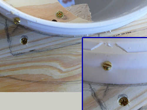 Para chapoteo fijo guarda bloques a tope, inserte el protector y voltee la tarjeta, con guardia. Taladre y atornille el anillo de refuerzo a la Junta. Tornillos de latón, aunque más caros, hacen una construcción de calidad que no aherrumbrará.